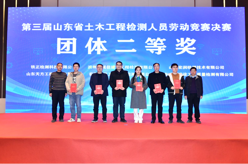 11月26日,在山東省住房和城鄉(xiāng)建設(shè)廳舉辦的第三屆山東省土木工程領(lǐng)域檢測(cè)人員勞動(dòng)競(jìng)賽決賽中,榮獲三項(xiàng)個(gè)人二等獎(jiǎng),一項(xiàng)團(tuán)體二等獎(jiǎng)。